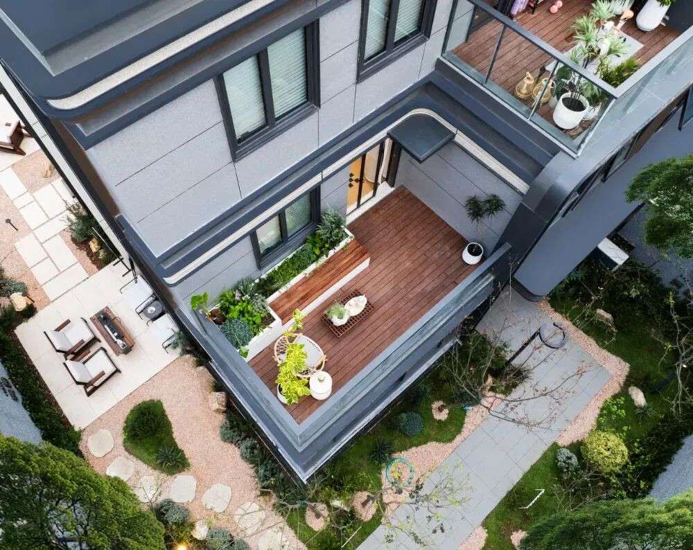 195㎡联排户型4房3厅4卫:前庭后院,层层空中庭院+地下室